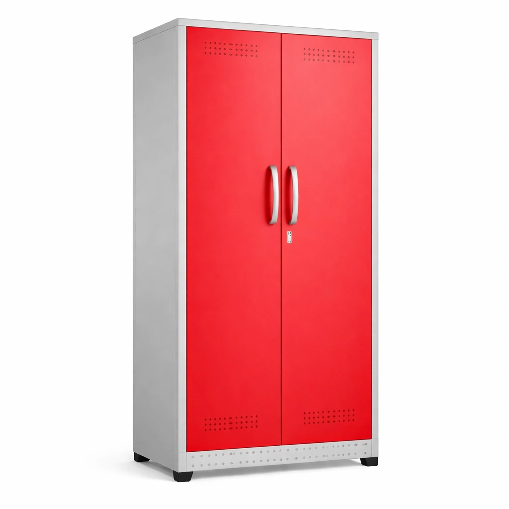 Armario de garaje de metal con puertas dobles gris negro 180x90x40 cm