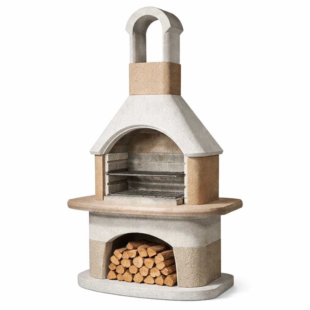 Material: Hormigón y piedra refractaria. Rejilla de acero inoxidable.